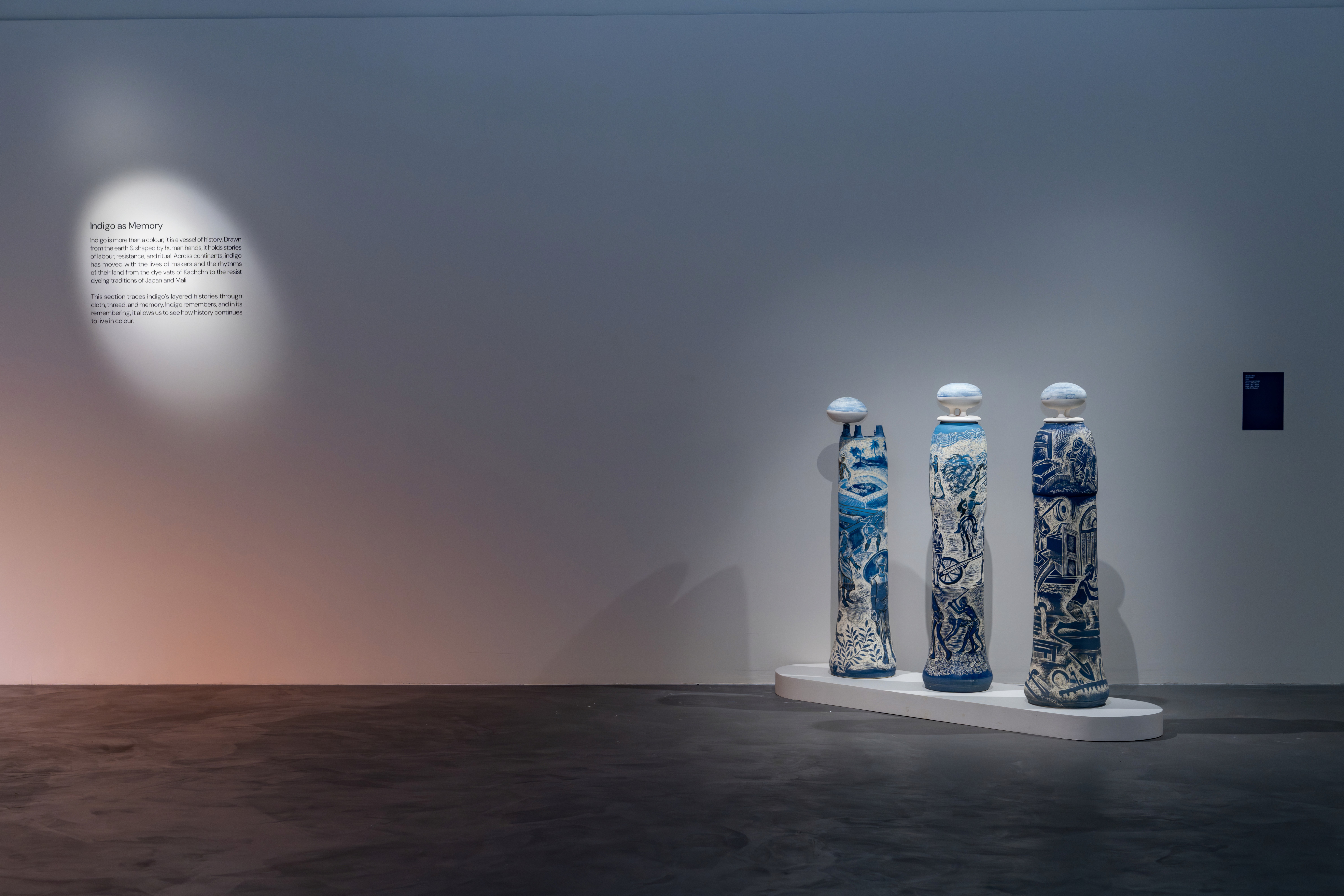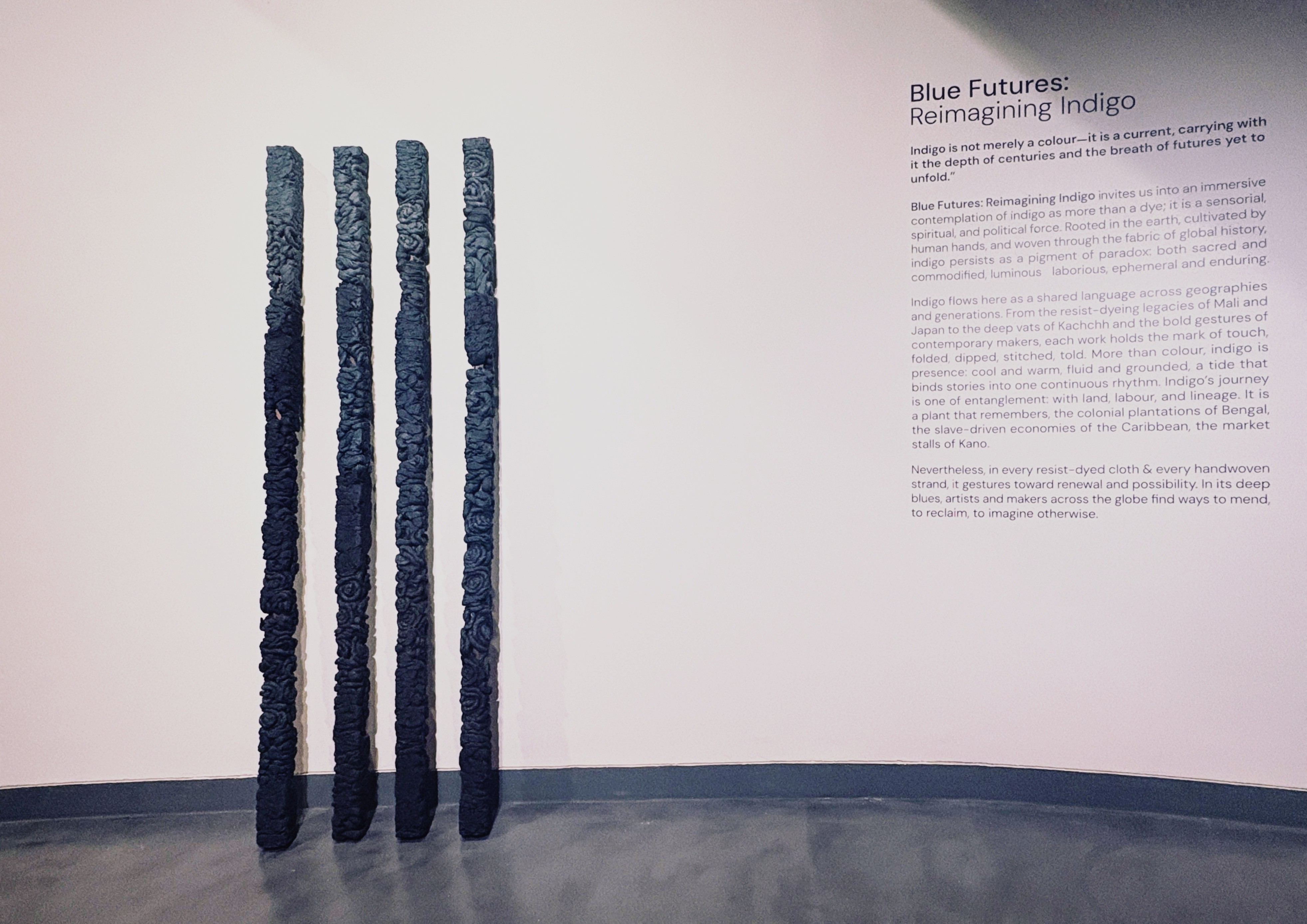 With deep appreciation to Parmeet Kaur Tesson for her creation of a special indigo dye that enriches the exhibition wall.
